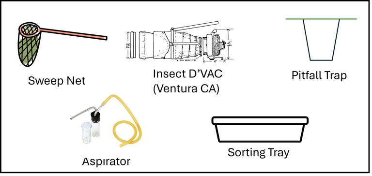 Sweep netting, hand collection, insect D’Vac (Ventura California), and pitfall traps were utilized.
