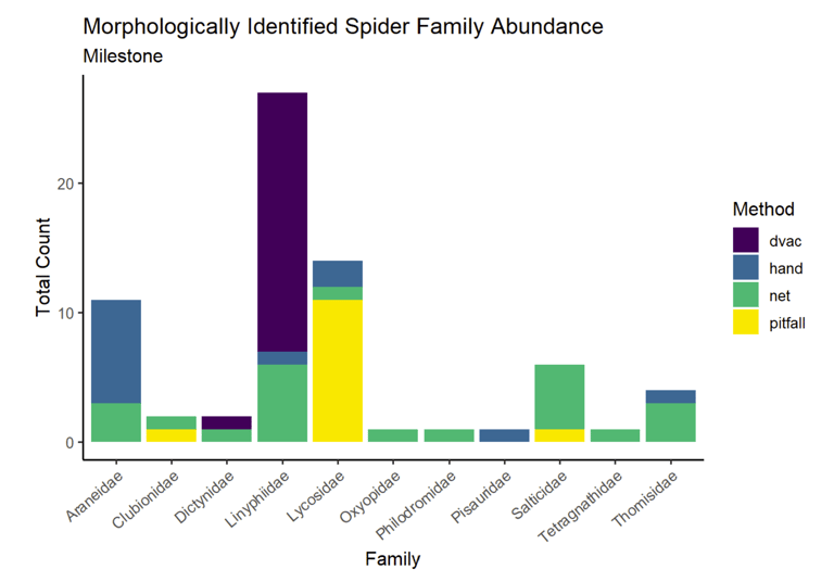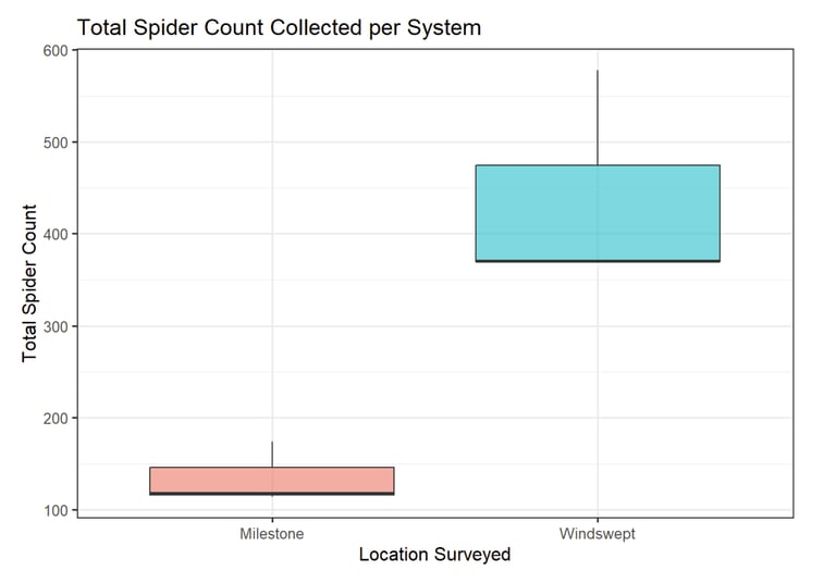 We sought to fill this knowledge gap by comparing the diversity of spider populations from an active conventional cranberry agroecosystem, Milestone, to those from a cranberry bog recently restored into a naturally functioning wetland, Windswept, on Nantucket Island Massachusetts.