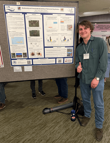 I joined the Poynton lab in 2024 to pursue a master’s degree in environmental science with a focus on arthropod biodiversity. My thesis is on the Biodiversity and Insecticide Sensitivity of Nantucket Bog Spiders. I utilize morphological and genetic identification to compare species level diversity between a conventional cranberry bog system and a restored bog wetland. I also look at how pesticides impact these populations of beneficial non-target organisms. Beyond spiders I am also interested in arthropod diversity, the causes of global declines in their populations, and methods to look at evolution and diversification.